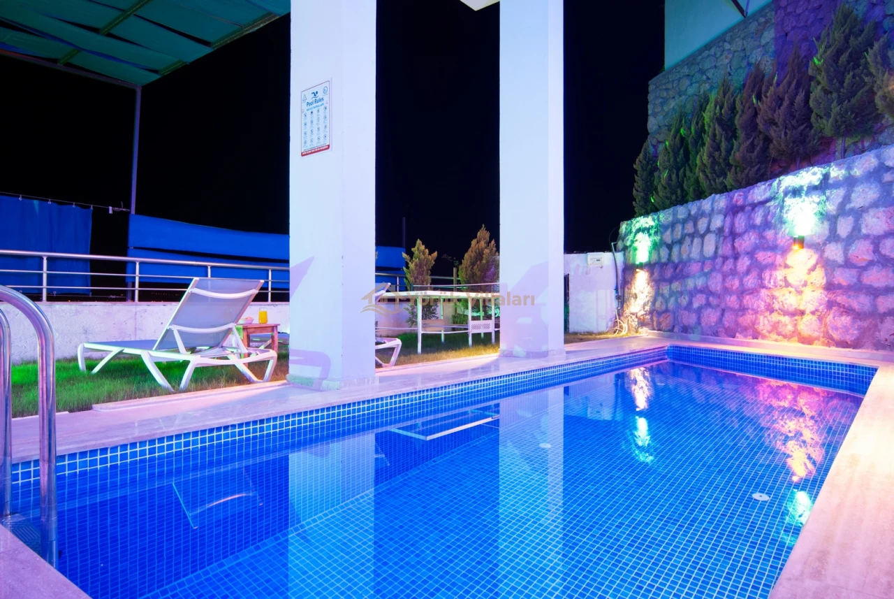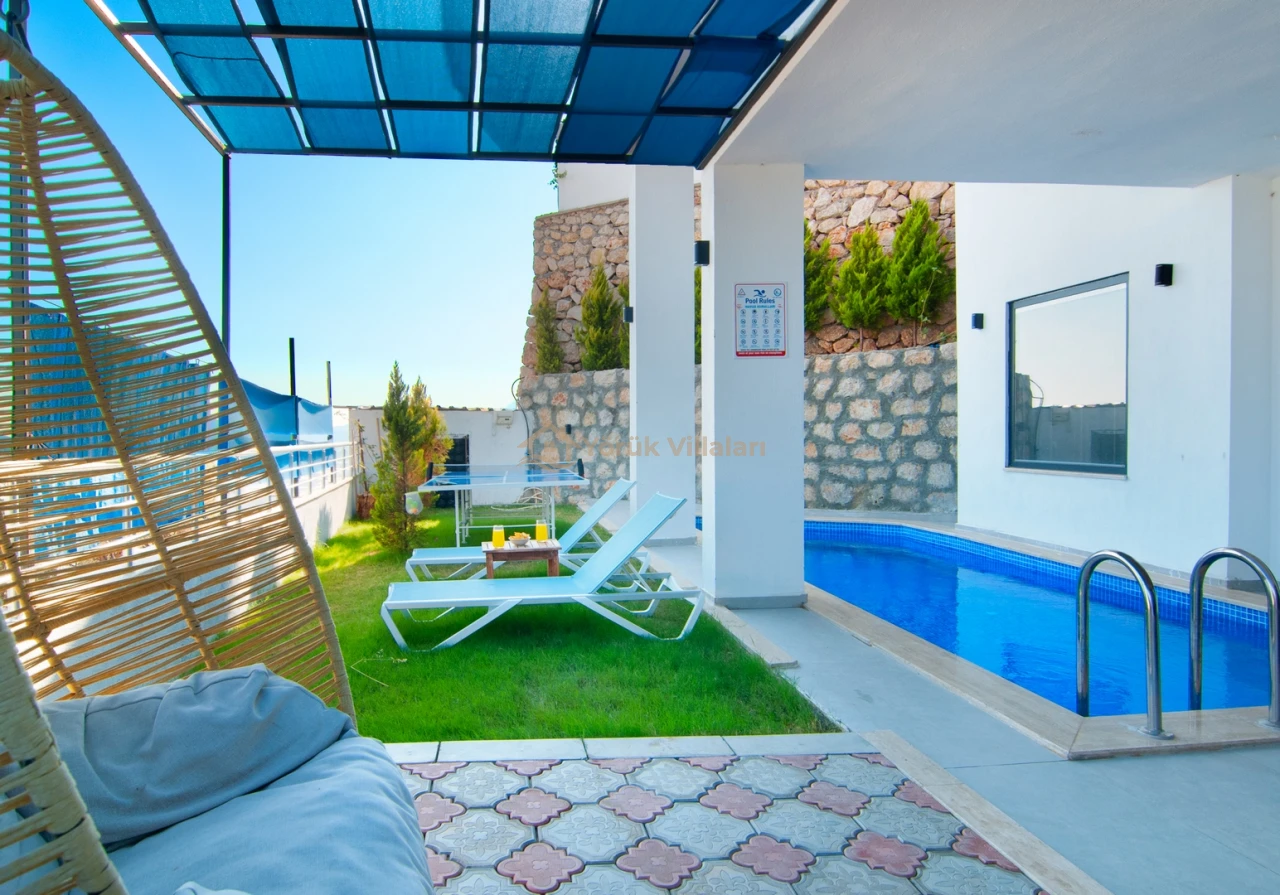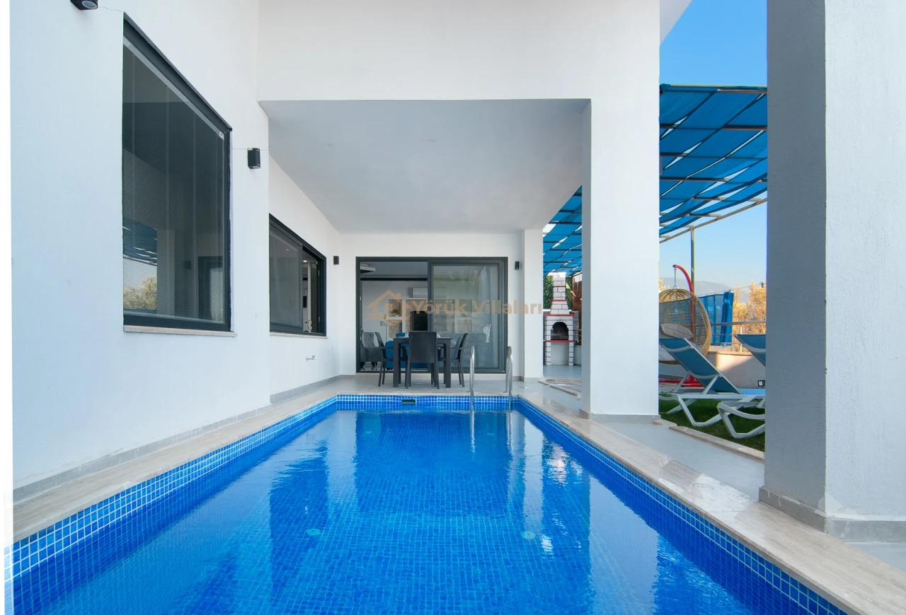 Villanın geniş ve korunaklı havuzu sayesinde mahremiyet içinde yüzmenin keyfini çıkarabilirsiniz. Havuzun boyutları 7 metre uzunluğunda ve 2.5 metre genişliğindedir, derinliği ise 1.55 metredir. Ayrıca, bahçede doğa manzarasının tadını çıkarabilir, BBQ - Mangal alanında sevdiklerinizle keyifli vakit geçirebilirsiniz.