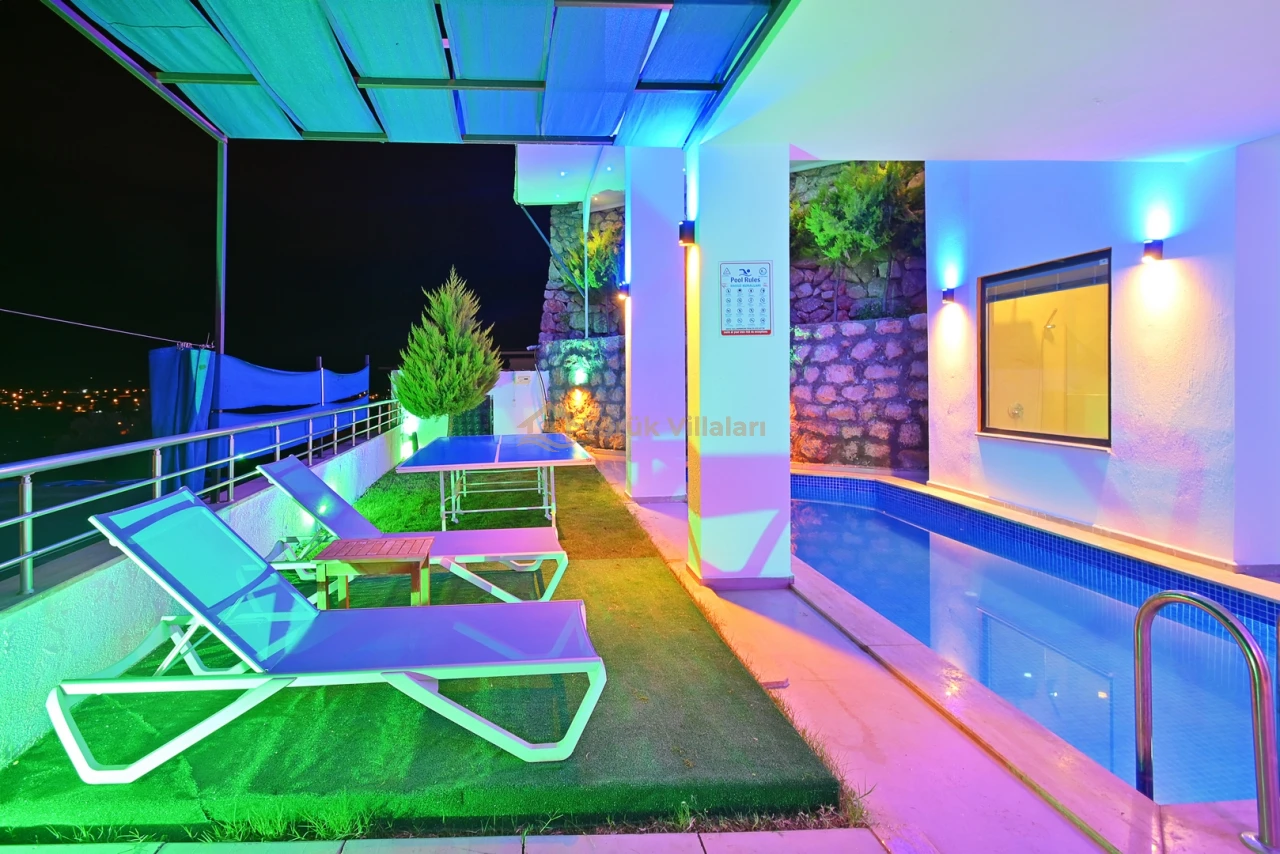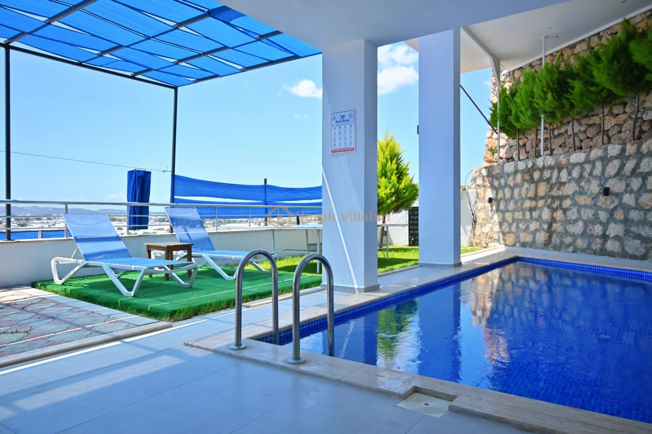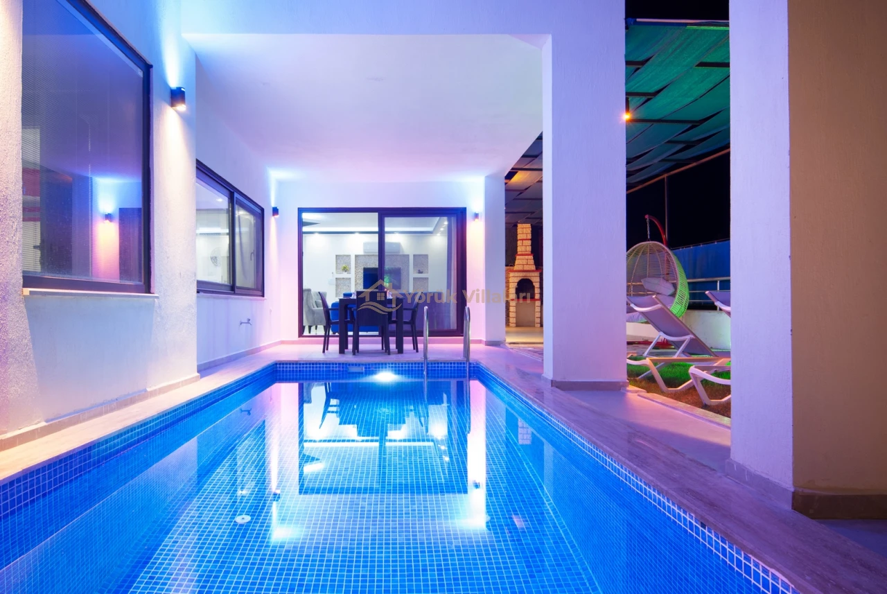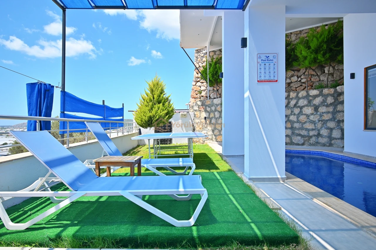 Villanın geniş ve korunaklı havuzu sayesinde mahremiyet içinde yüzmenin keyfini çıkarabilirsiniz. Havuzun boyutları 7 metre uzunluğunda ve 2.5 metre genişliğindedir, derinliği ise 1.55 metredir. Ayrıca, bahçede doğa manzarasının tadını çıkarabilir, BBQ - Mangal alanında sevdiklerinizle keyifli vakit geçirebilirsiniz.