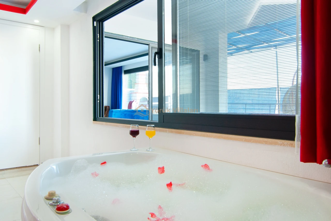 Villamız, jakuzisi ve muhafazakar villa kategorisinde bulunması ile özellikle dikkat çekmektedir. İç mekanlarda ise ütü ve saç kurutma makinesi gibi konfor artırıcı detaylar düşünülmüştür.