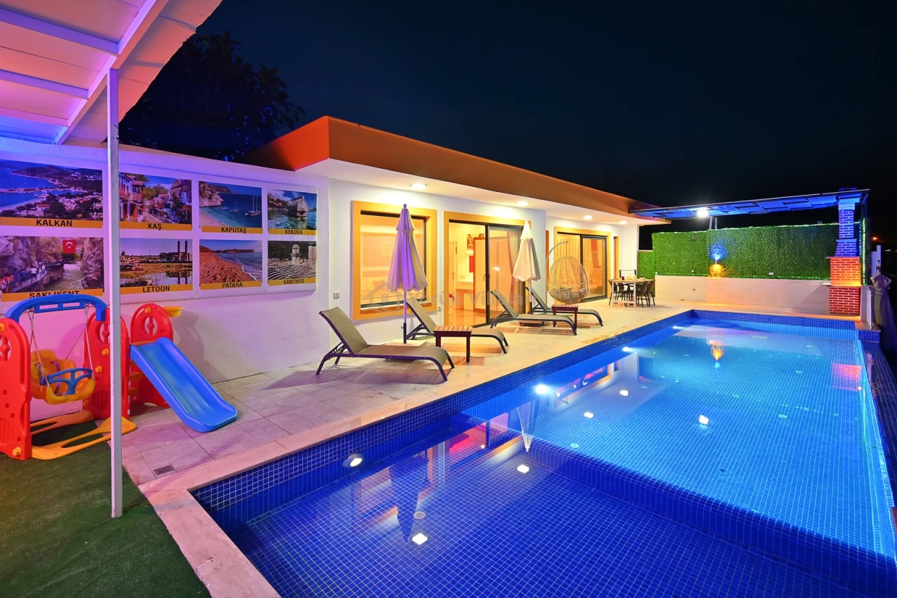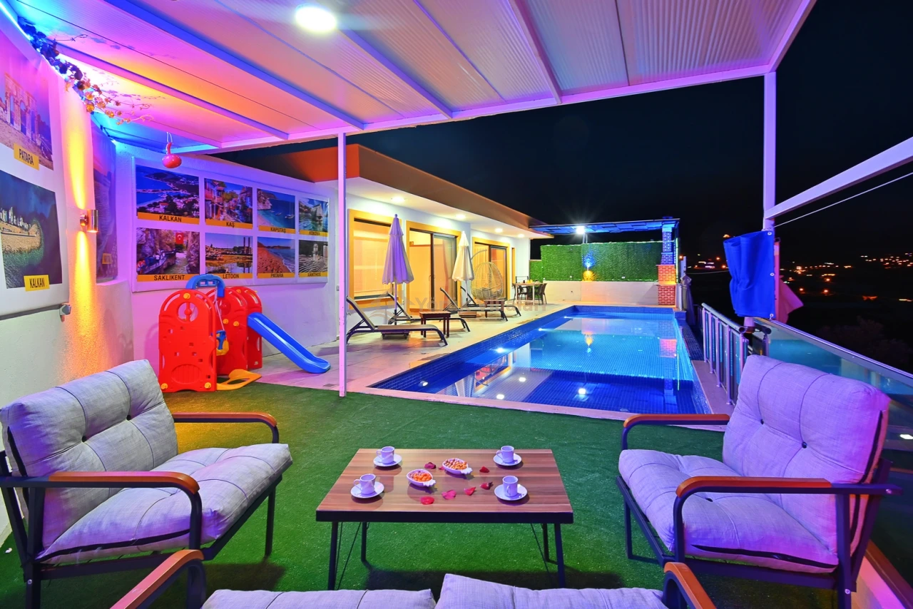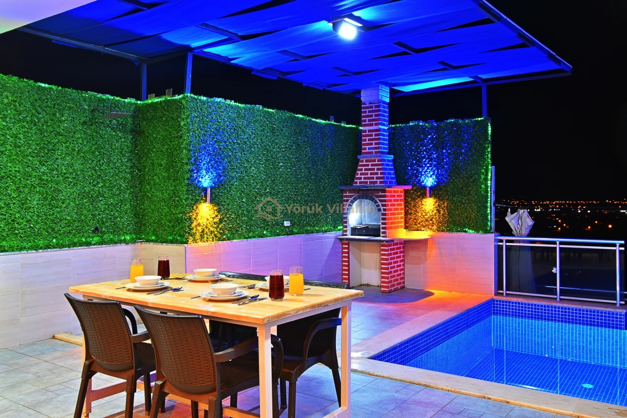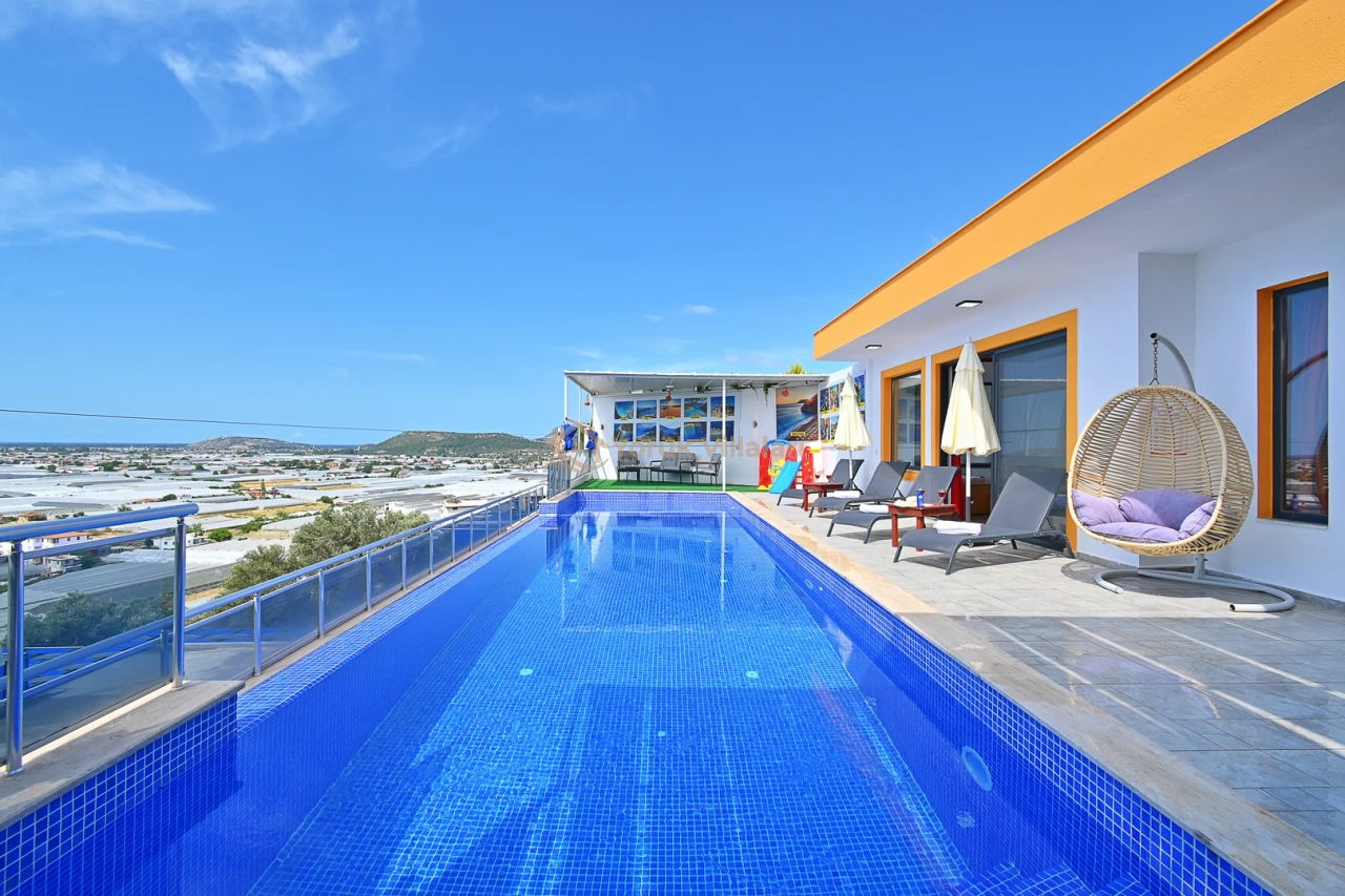Kınık'ın eşsiz doğasında konumlanan bu lüks villa, dört kişilik kapasitesi ile konforlu bir konaklama imkanı sunmaktadır. Özel yüzme havuzu ile serinleme imkanı bulacağınız bu villa, 3,5 metre genişliğinde, 10 metre uzunluğunda ve 1,55 metre derinliğinde bir havuza sahiptir. Ayrıca çocuklar için özel çocuk havuzu da bulunmaktadır.