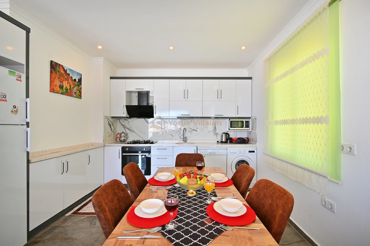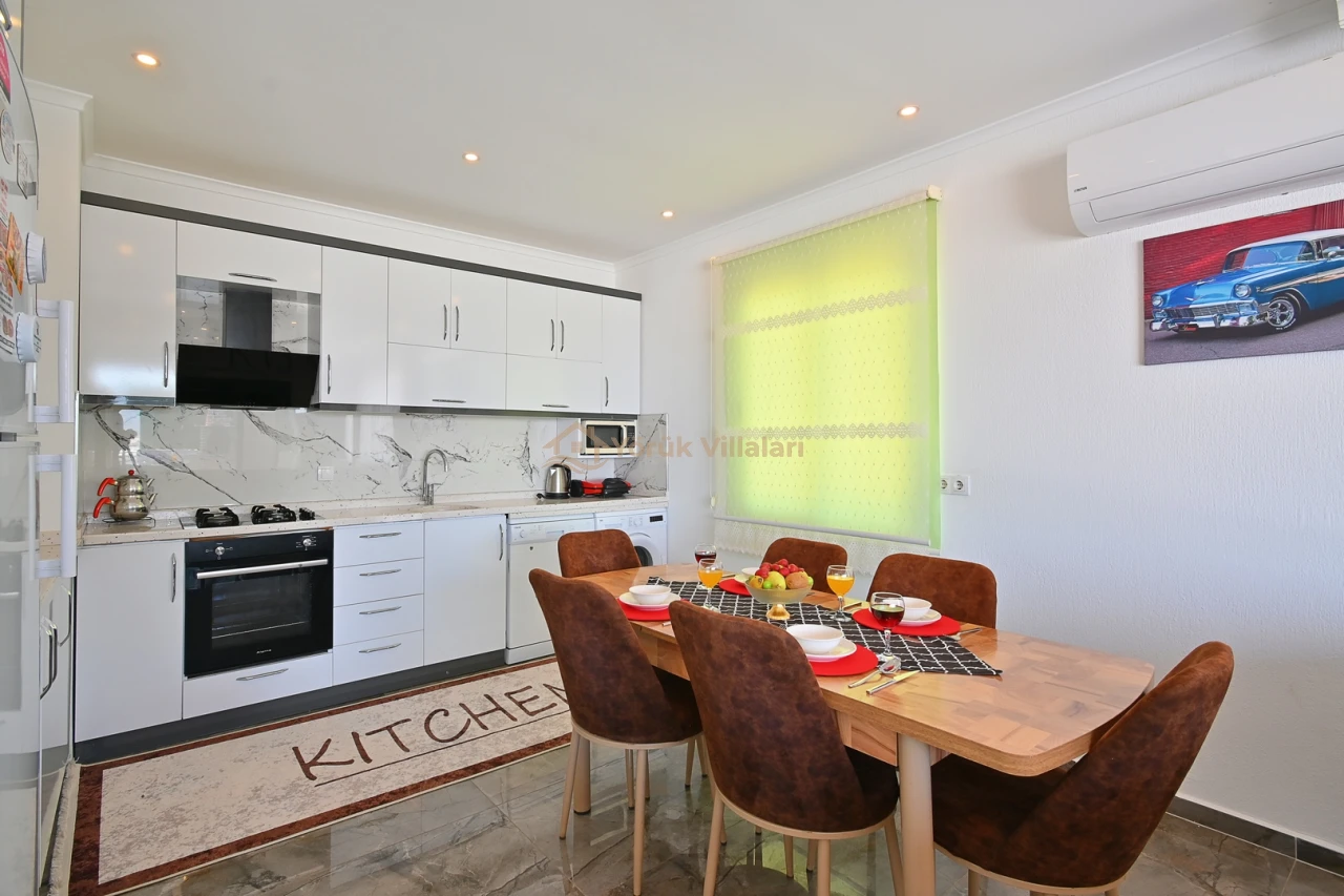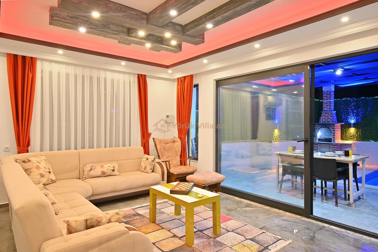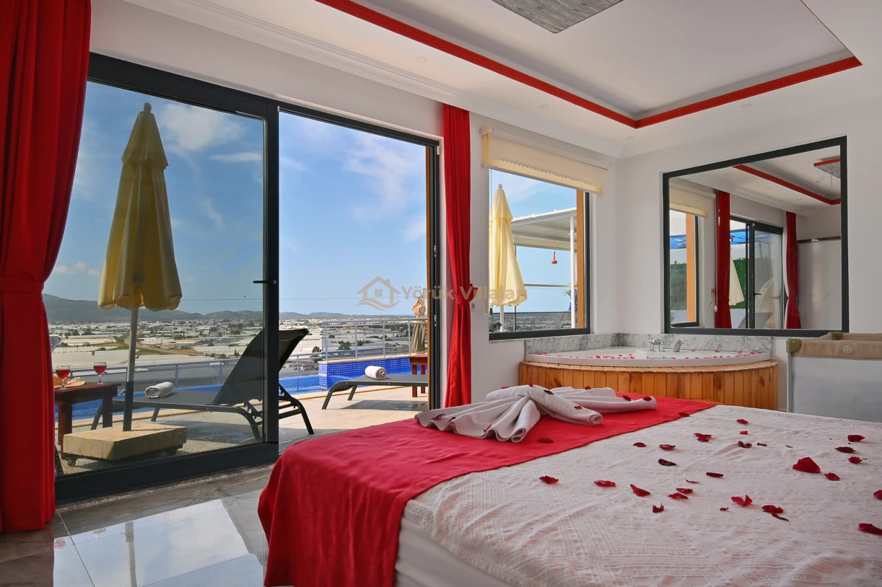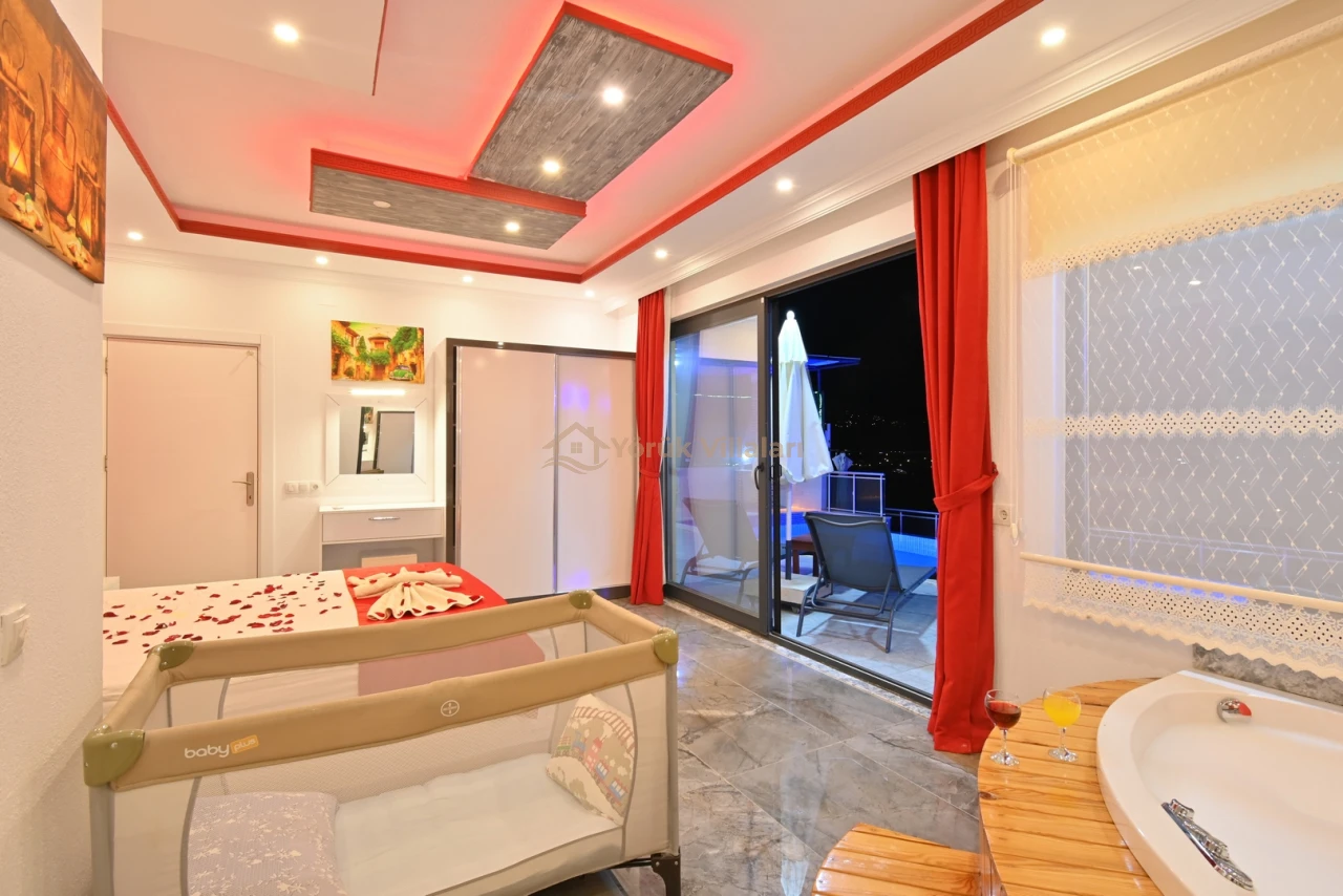 Villanın iç mekanında iki yatak odası ve iki banyo mevcuttur. Bir adet çift kişilik yatak ve iki adet tek kişilik yatak ile misafirlerine rahat bir uyku ortamı sunar. Bebek yatağı da düşünülen detaylar arasında yer almaktadır.
