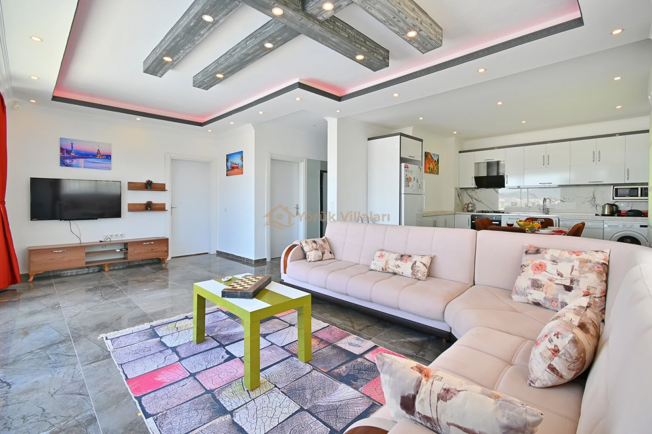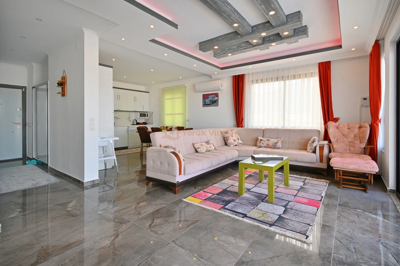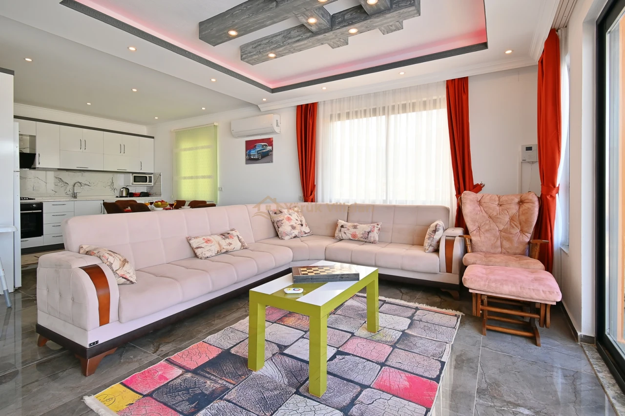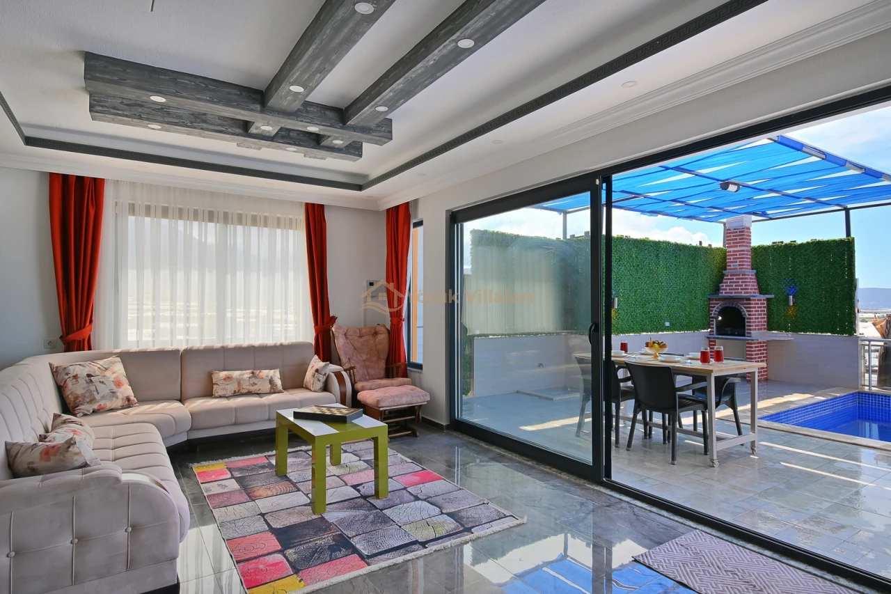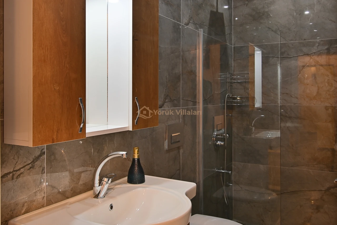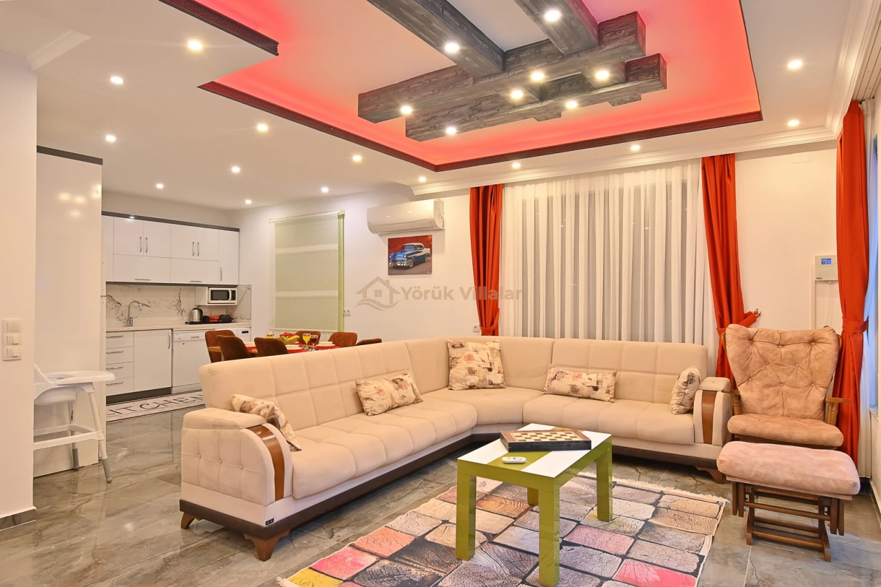 Villanın iç mekanında iki yatak odası ve iki banyo mevcuttur. Bir adet çift kişilik yatak ve iki adet tek kişilik yatak ile misafirlerine rahat bir uyku ortamı sunar. Bebek yatağı da düşünülen detaylar arasında yer almaktadır.
